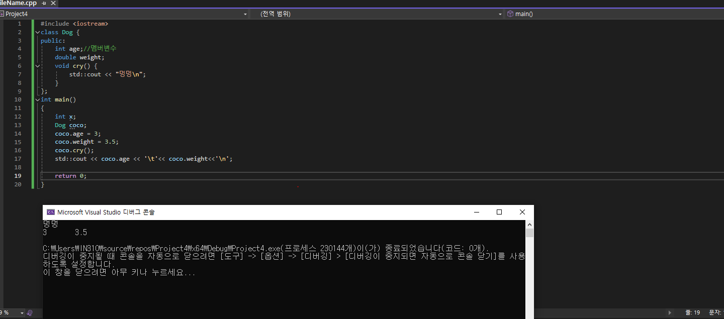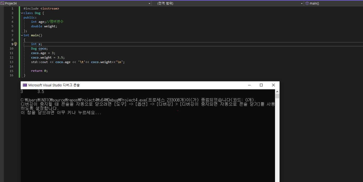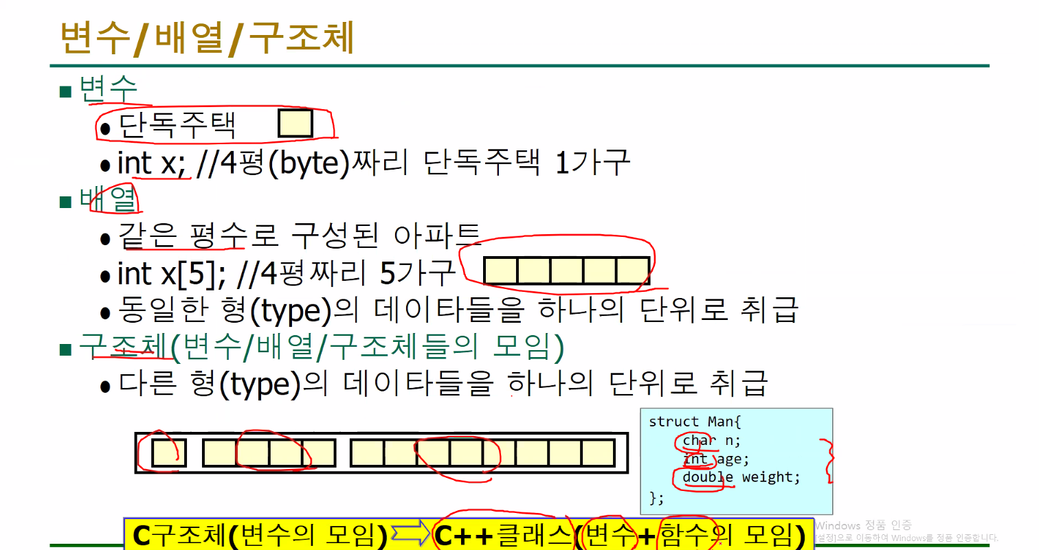 c언어의 구조체에서는 변수만 넣을수있었는데 c++클래스로 넘어가면서는 함수도 넣을수있다.