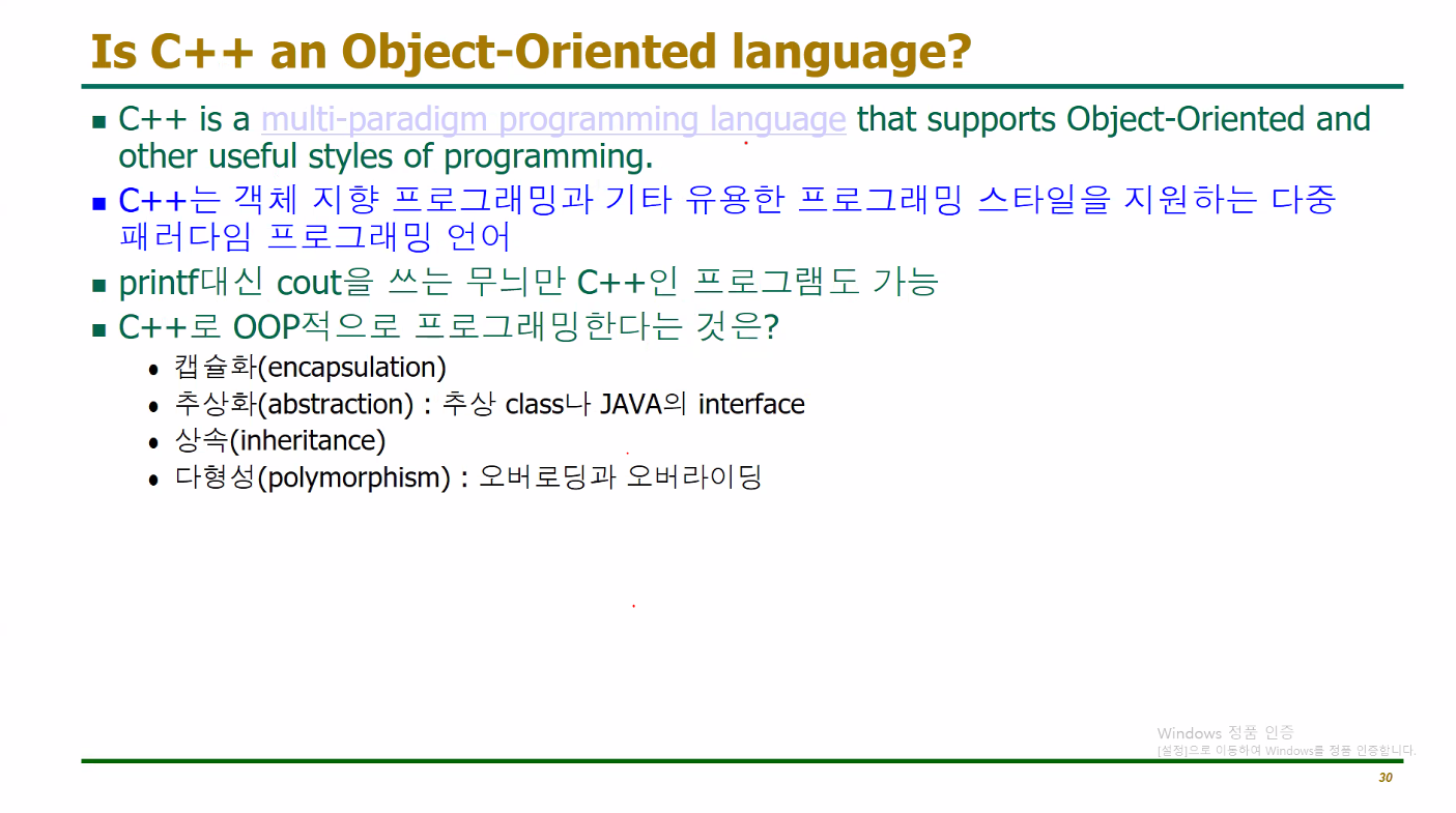 c++은 객체지향언어보다 멀티패러다임 언어이다. c++를 oop적으로 프로그래밍하면 저 4가지를 알아야된다.