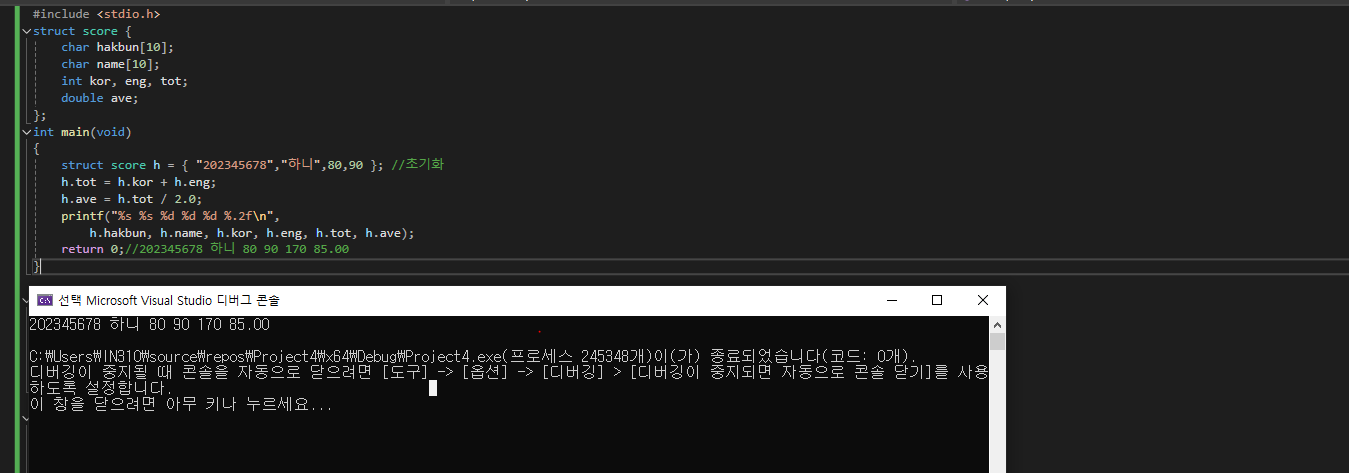 구조체에 같은연산을 대입하면 멤버들이 다 복사가 된다.